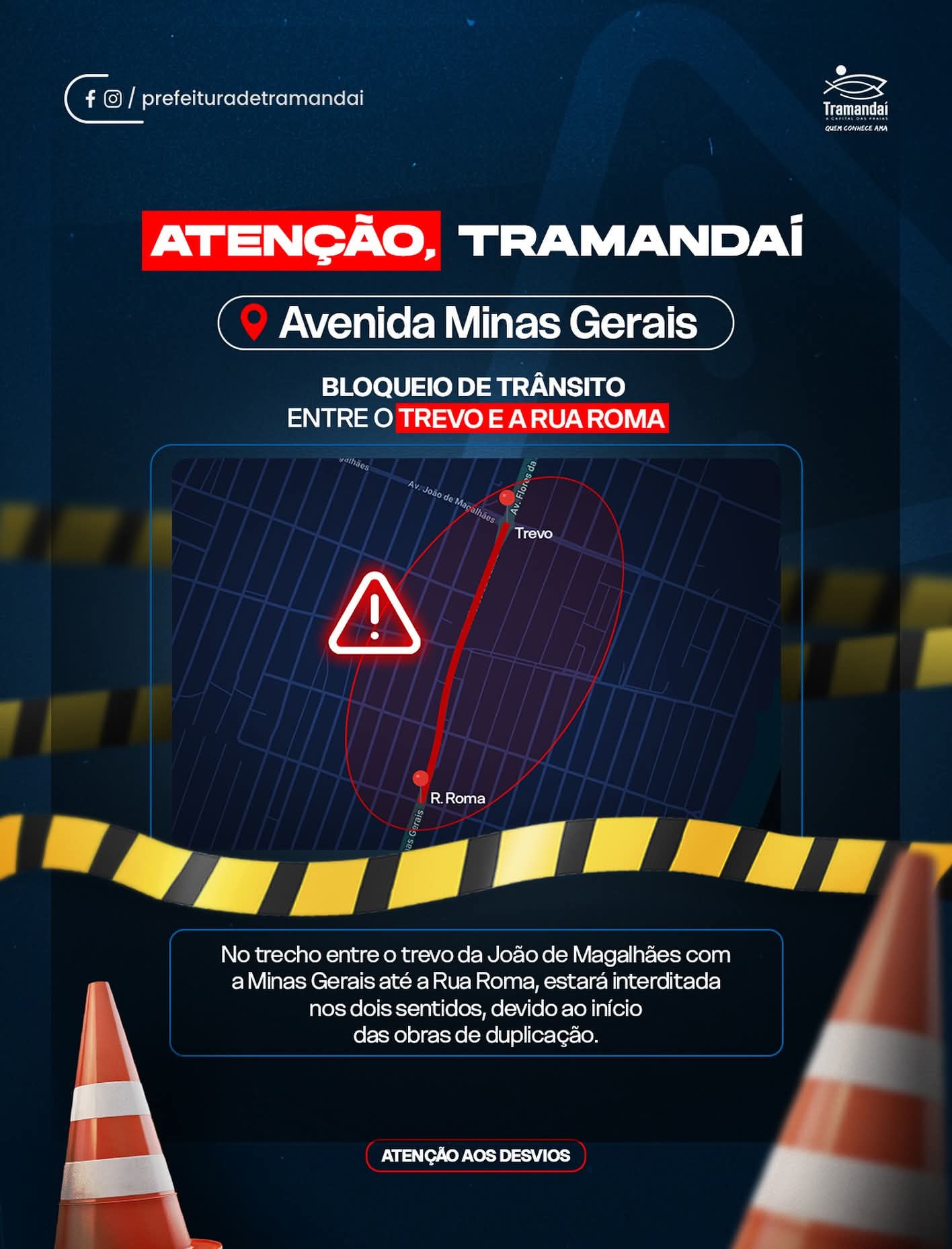 ⚠️ Atenção aos desvios e sinalizações no local!