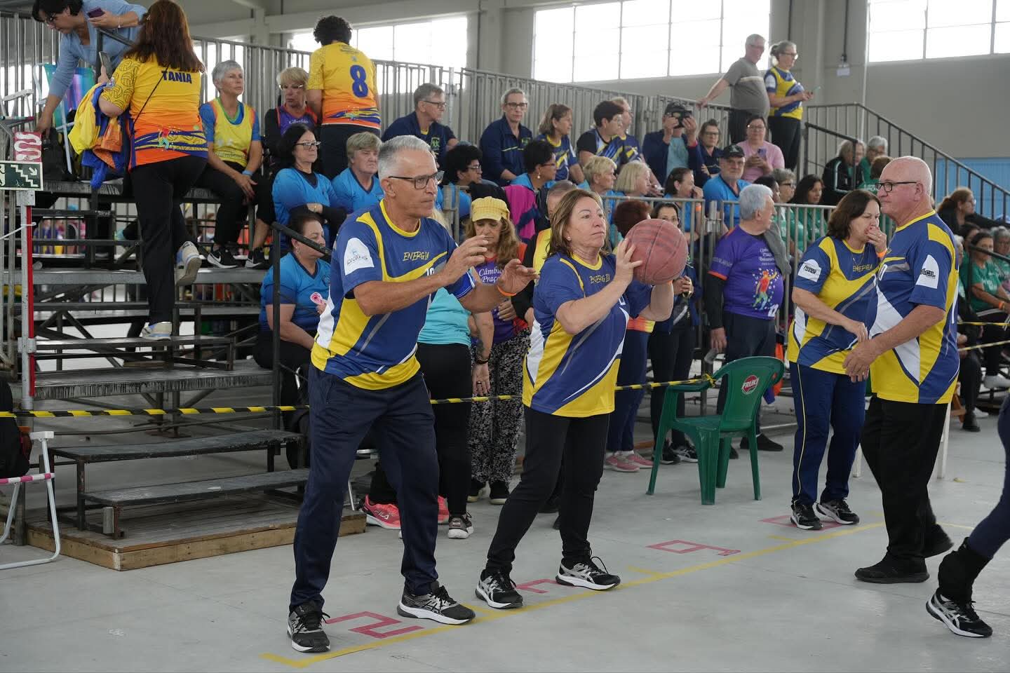 Ao todo, 1.605 participantes de 34 municípios gaúchos estiveram reunidos em uma verdadeira celebração da vitalidade, da amizade e do esporte! Foram 48 grupos, com centenas de atletas nas modalidades de câmbio, basquete e handebol, além de muita animação e espírito esportivo em cada competição.
