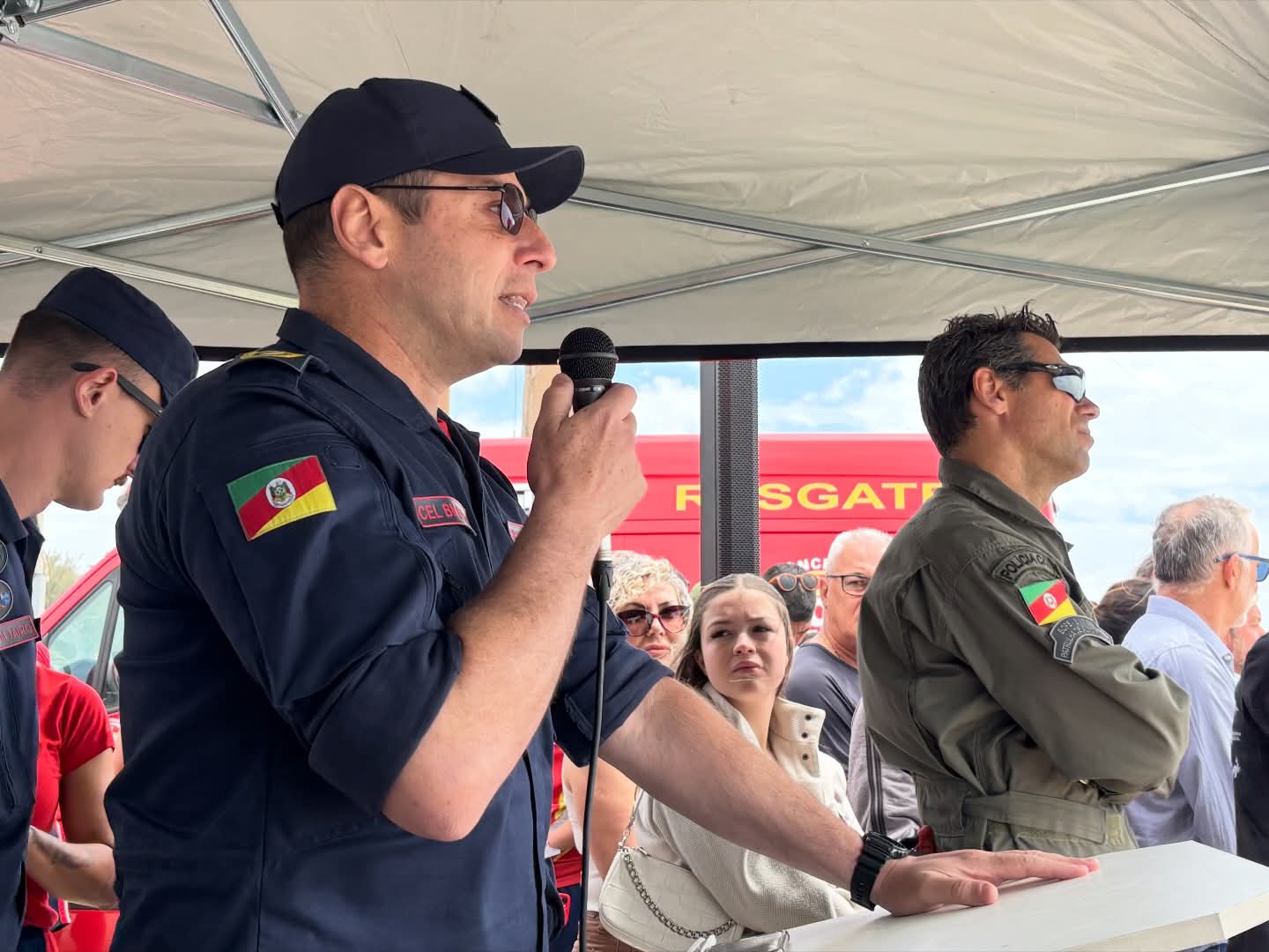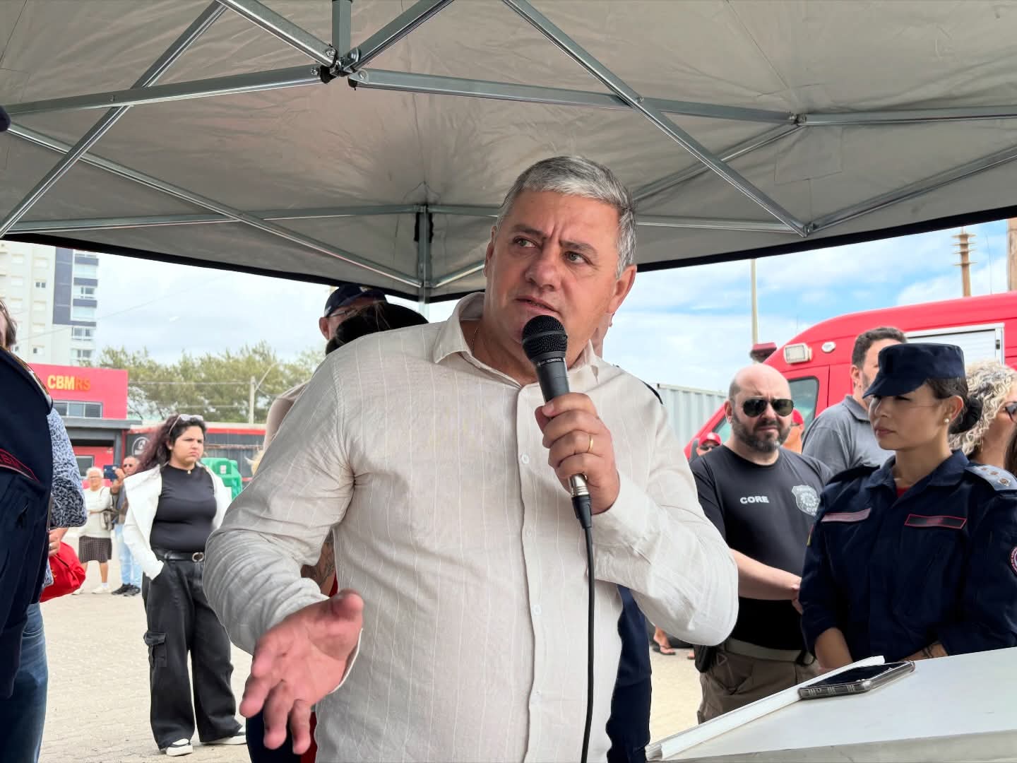 O vice-prefeito Claudiomir, a chefe de gabinete Rosani Muller e o secretário de Segurança, Transporte e Trânsito, Paulo Ricardo Trevisol, participaram do ato oficial, realizado na sede administrativa do 9º BBM, em Tramandaí.