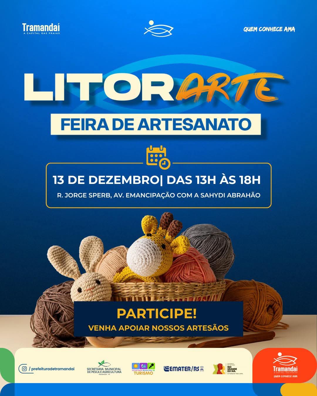 A Prefeitura de Tramandaí convida a comunidade e visitantes para prestigiar mais uma edição da LitorArte, um espaço especial dedicado ao talento e à criatividade dos nossos artesãos.