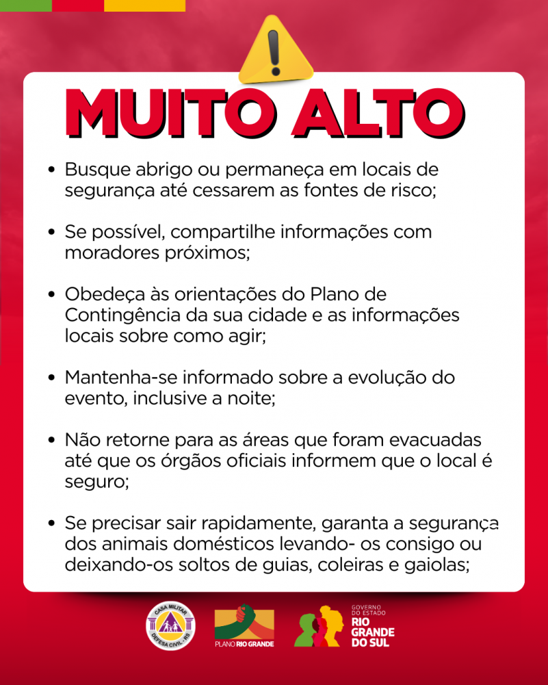 Mantenha-se abrigado durante os temporais. Retire eletroeletrônicos da tomada e mantenha portas e janelas bem fechadas. Abrigue os animais domésticos.