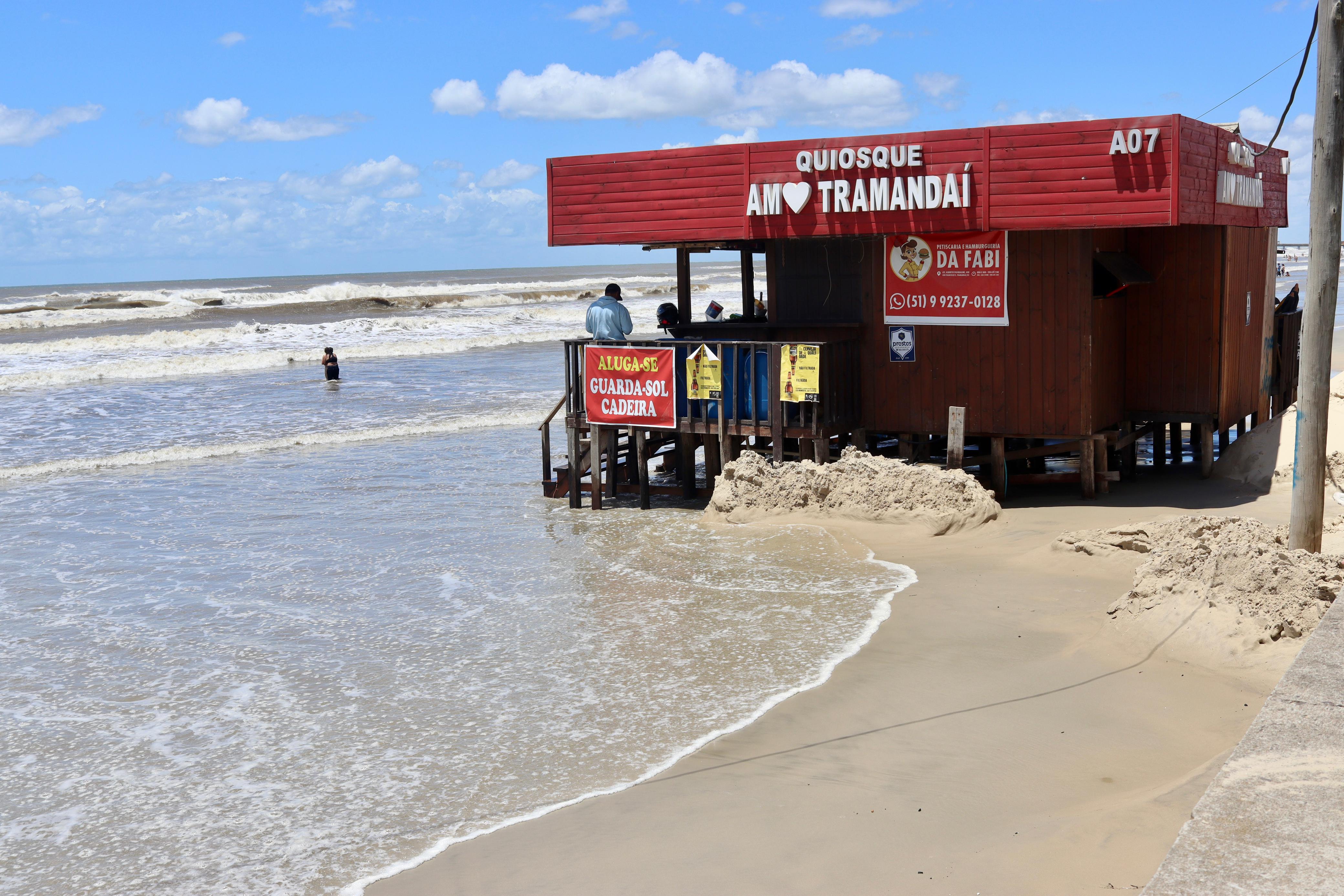 A Prefeitura de Tramandaí, por meio da Secretaria de Obras, iniciou ainda nas primeiras horas da manhã deste domingo (04/01) um trabalho emergencial na orla do município após a forte ressaca marítima registrada durante a madrugada, que acabou atingindo a estrutura de alguns quiosques.
