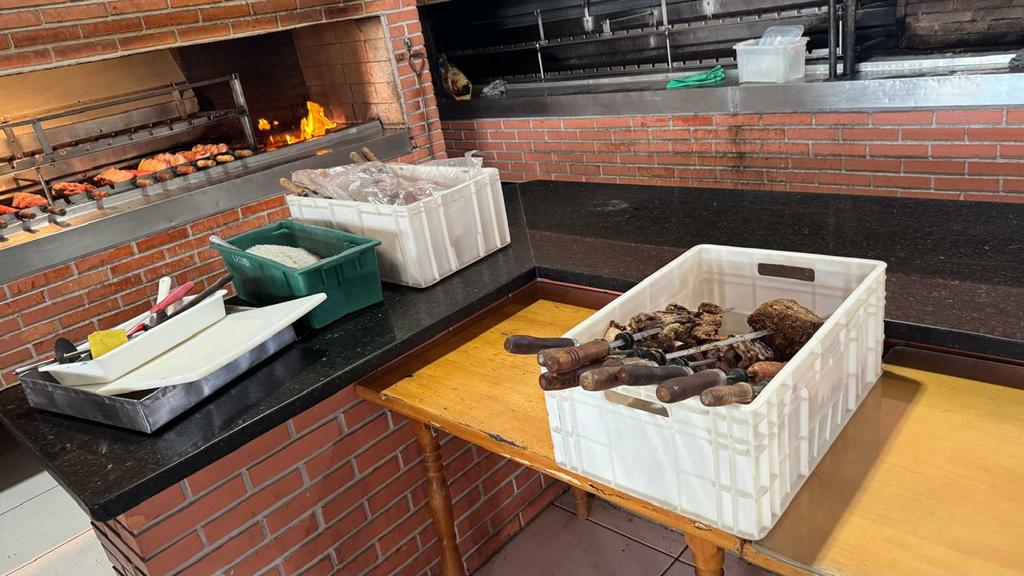 Uma churrascaria foi interditada devido às péssimas condições de higiene. No local, os agentes encontraram espetos com carne preparados na véspera ainda expostos ao ambiente. Parte deles estava armazenada de forma inadequada em geladeiras, e outros sequer estavam refrigerados. Segundo os agentes, as carnes seriam apenas reaquecidas e vendidas no almoço de hoje.