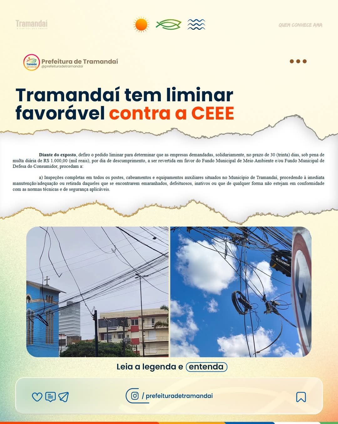 A Prefeitura de Tramandaí conquistou uma decisão liminar favorável na Justiça que determina que a CEEE adote providências imediatas para resolver problemas na rede elétrica do município.