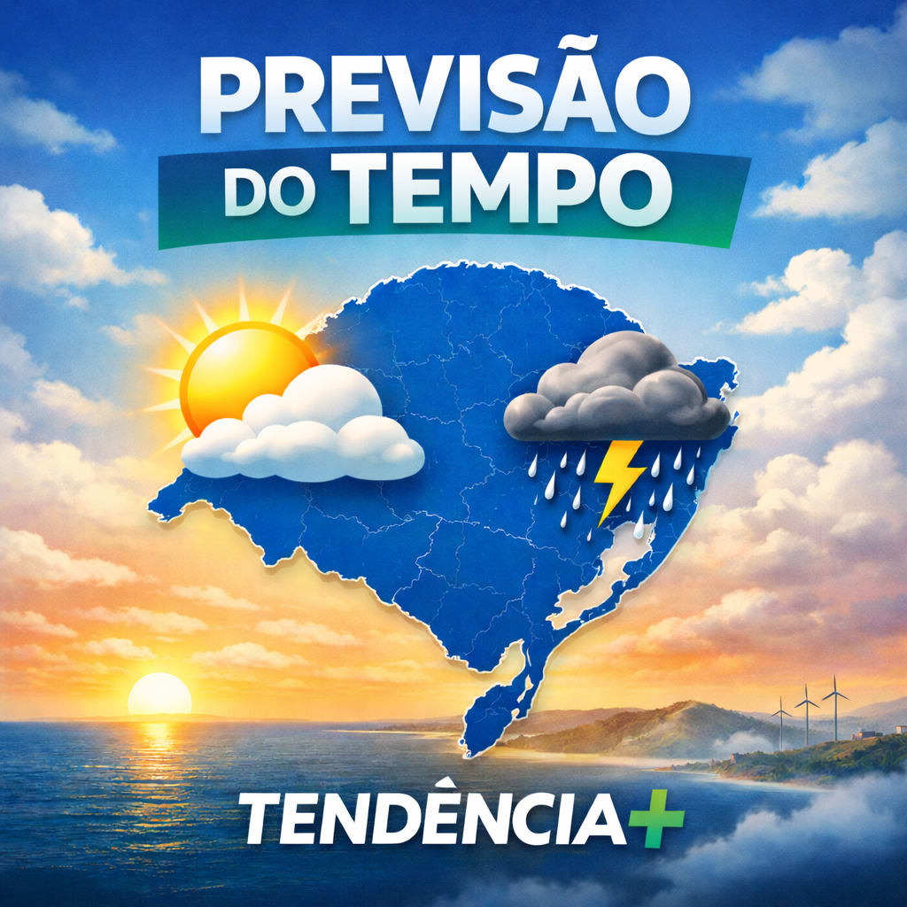 Segunda: Sol com aumento de nuvens; chance de chuva leve à tarde/noite.