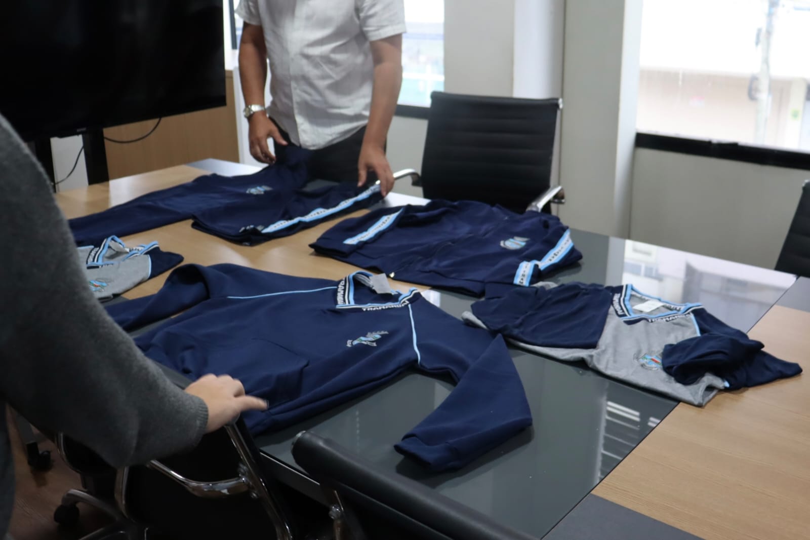 O kit é composto por calça, bermuda, camisetas de manga curta e longa, além de casaco e moletom, oferecendo um conjunto completo para atender os estudantes com conforto e padronização.