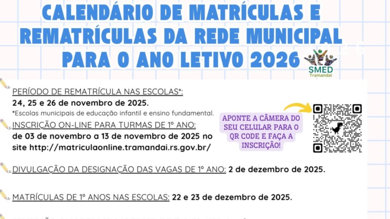 Calendário de Matrículas e Rematrículas 2026 está disponível!