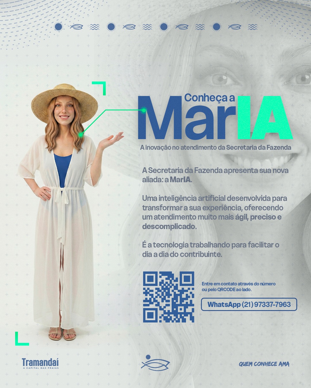 Desde o dia 1º de janeiro de 2026, a Prefeitura de Tramandaí disponibiliza aos cidadãos a ferramenta MarIA, uma assistente virtual baseada em inteligência artificial generativa que pode ser consultada, inicialmente via Whatsapp, e em breve também no Portal de Serviços da Prefeitura de Tramandaí.