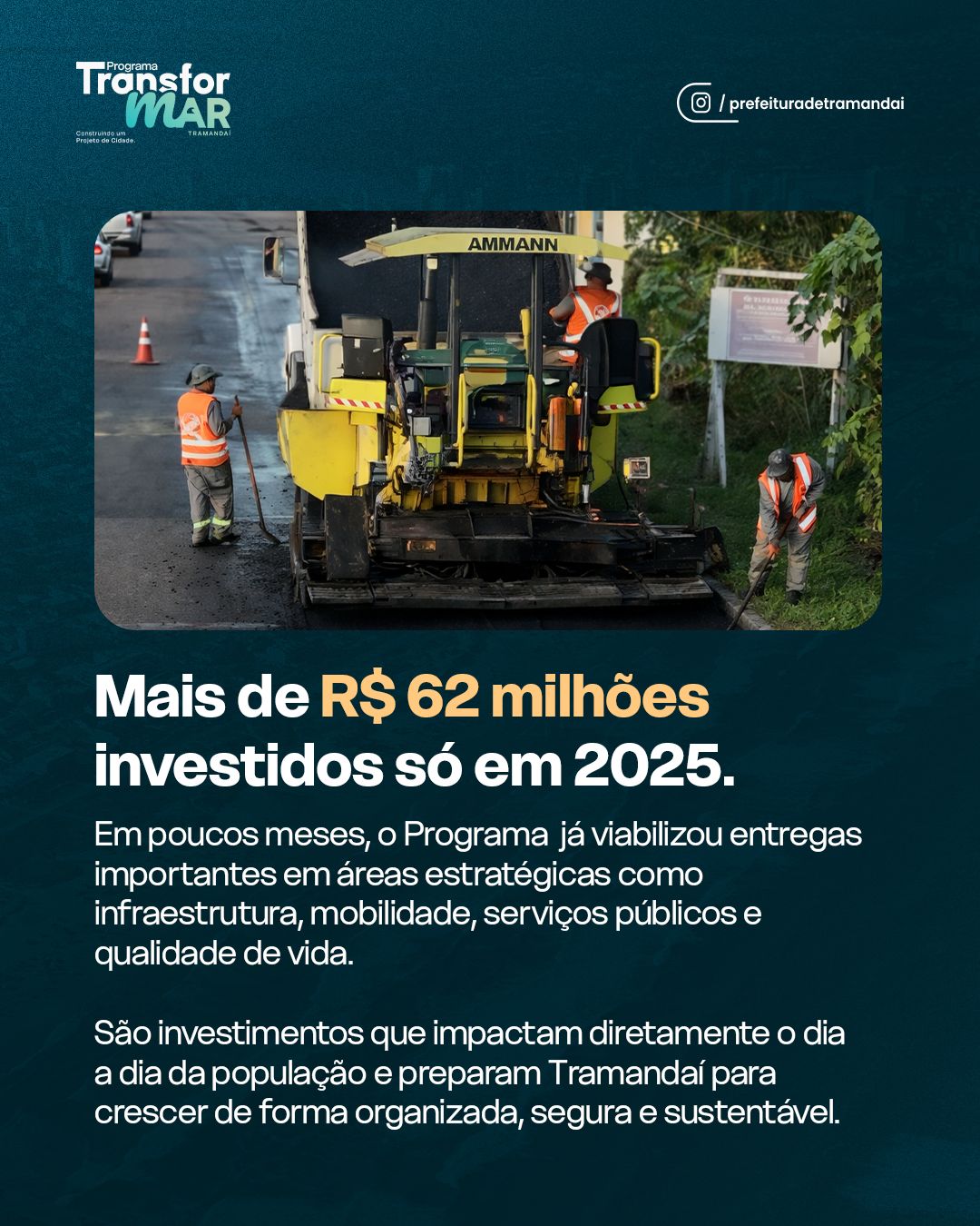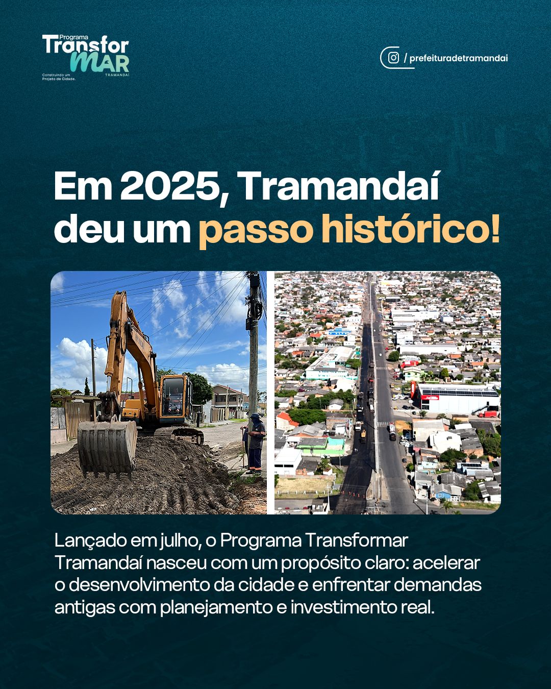 Para o ano de 2026, o Programa Transformar inclui aquisição de maquinário pesado, modernização do calçadão da av. Emancipação, construção da base operação do Samu, nova sede da Guarda Municipal, modernização da av. da Igreja e Centro de Nova Tramandaí, posto avançado de resgate e salvamento aquático na av. Beira Mar e duplicação, pavimentação e recapeamento de 37 ruas da cidade com esgotamento pluvial e drenagem.