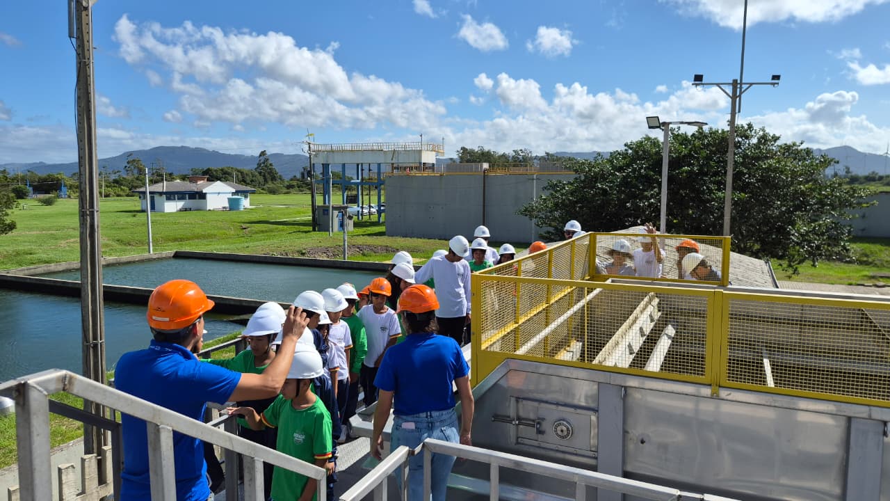 Os mais de 20 alunos do 3º ao 9º ano e os educadores acompanharam desde a chegada dos resíduos à estação de tratamento de esgoto até o final do processo de purificação, observando de perto como o trabalho técnico garante o retorno seguro do efluente tratado ao meio ambiente. Da mesma forma, a turma presenciou as etapas que garantem a qualidade da água tratada na estação e distribuída à população.